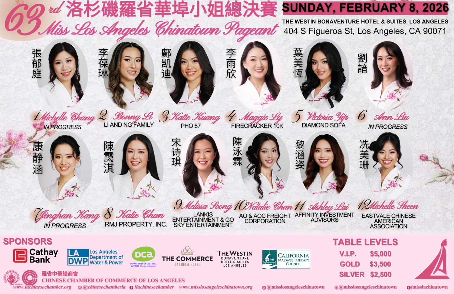 (Image source: Chinese American Citizens Alliance (LA) Facebook) Presenting your 62nd Miss Los Angeles Chinatown court: (from left to right)